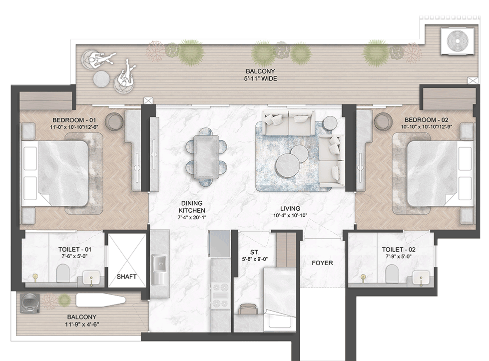 Sports & wellness themed 2.5 BHK residences that bring together comfort, elegance, and functionality.